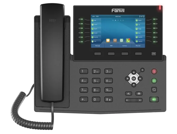 View ProductHigh-end Gigabit(10/100/1000Mbps)IP phone. 20 SIP lines,5-inch color screen,Built-in Bluetooth for connecting Bluetooth headset; Wi-Fi connectivity(Via Wi-Fi dongle); Up to 60 DSS keys entries available(12 physical); Video Codec H.264 support for receiving video calls.Support Fanvil SIP hotspot function